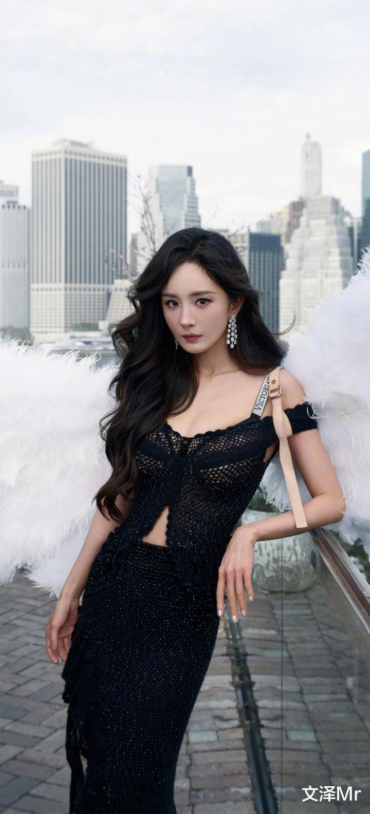 在钢筋水泥的都市丛林间,杨幂一袭镂空露肩黑裙侧身而立。波浪卷发随风扬起,背后巨型羽毛翅膀如梦似幻。最绝的是她游走于性感与清冷之间的眼神杀——红唇微启时妩媚倾城,侧目远眺时又自带疏离感,这大概就是顶奢品牌连续8年与她合作的原因!