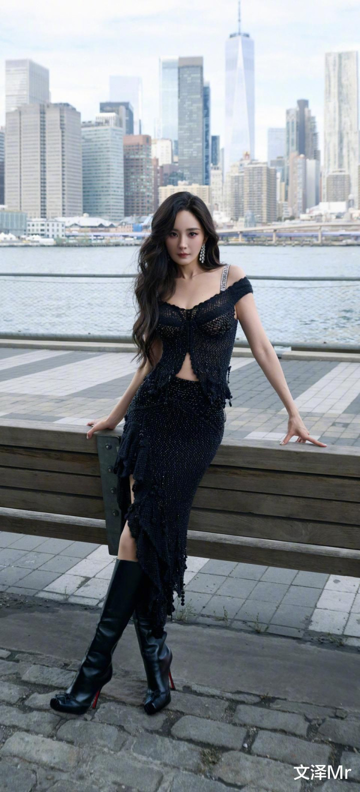 第三张动态感十足的画面里,网眼连衣裙的流苏随风起舞,发丝掠过艳红唇角的瞬间被精准捕捉。曾有造型师爆料杨幂对服装细节苛刻到毫米级,连流苏长度都要亲自调整。这种“时尚偏执”终成就经典——裙摆扬起的弧度恰好露出脚踝,性感到骨子里却不露俗气。